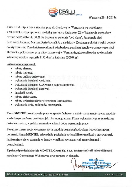Mont-el: Generalny wykonawca dla firmy DEA ltd