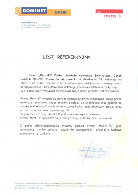 Mont-el: Generalny wykonawca dla firmy DOMINET BANK S.A.