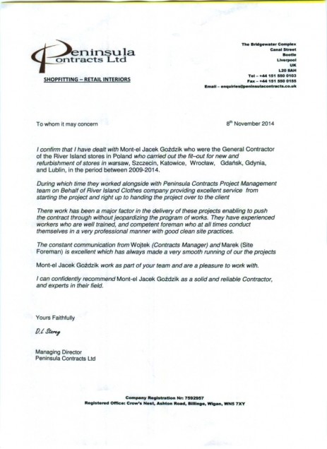 Mont-el: Generalny wykonawca dla firmy Peninsula Contracts Ltd