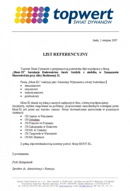 Mont-el: Generalny wykonawca dla firmy TOPWERT Sp. z o.o.